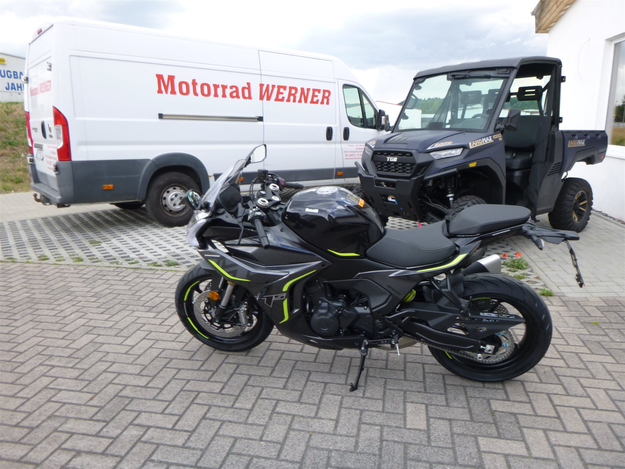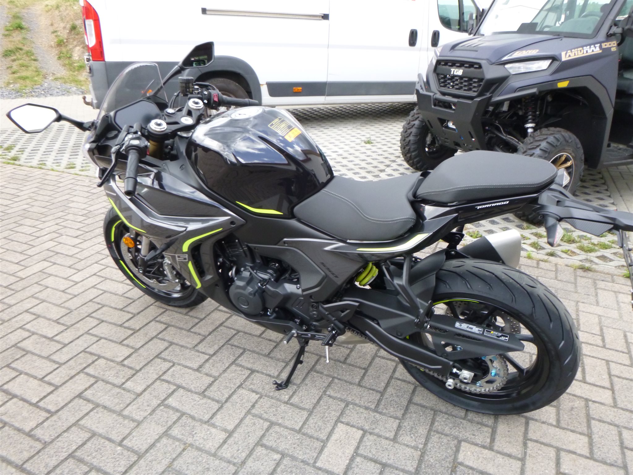 ABS Katalysator Elektrostarter Fahrzeugbeschreibung Vorführfahrzeug Benelli Tornado 550 schwarz sofort verfügbar, noch keine 20 km gelaufen, Finanzierung ab 3,99 % effektivem Jahreszins möglich. Auslieferung deutschlandweit ab 149,00 Eur . Inzahlungnahme möglich, Besuchen Sie uns auch unter www.motorrad-werner.com Fahrzeugdetails